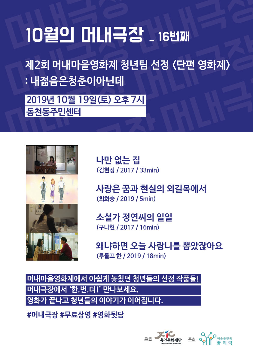 10월19일 머내극장에서 만날 수 있는 단 한 번의 기회 놓치지 마세요.