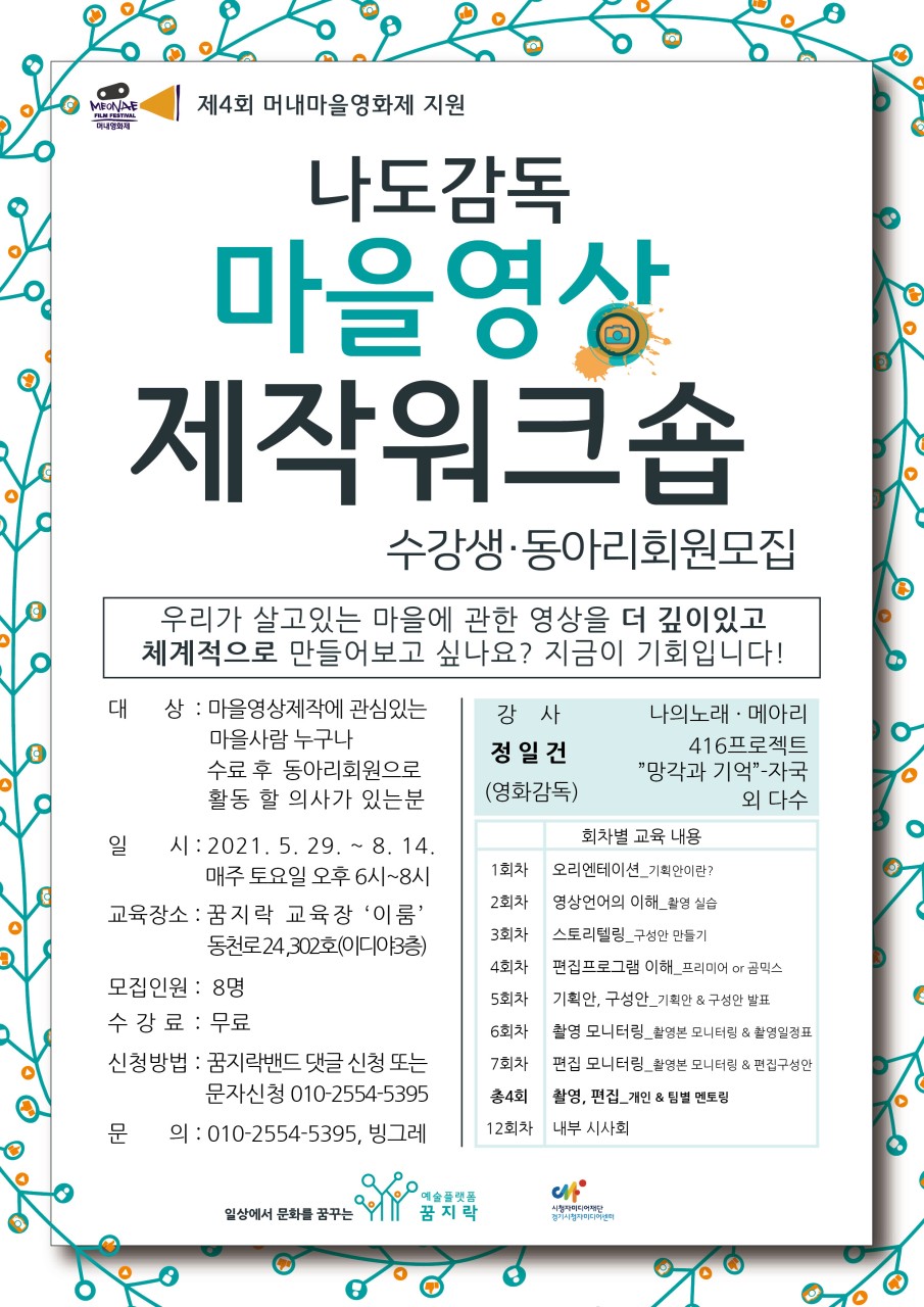 나도감독 마을영상 제작 워크숍은 마을영상을 제작하면서 '나만의 제작 스킬'도 가져갈 수 있는 영상제작교육 프로그램입니다. 이 워크숍에서 제작된 영상들은 머내마을 영화제에서도 상영할 예정이니 기대 많이 해주세요!