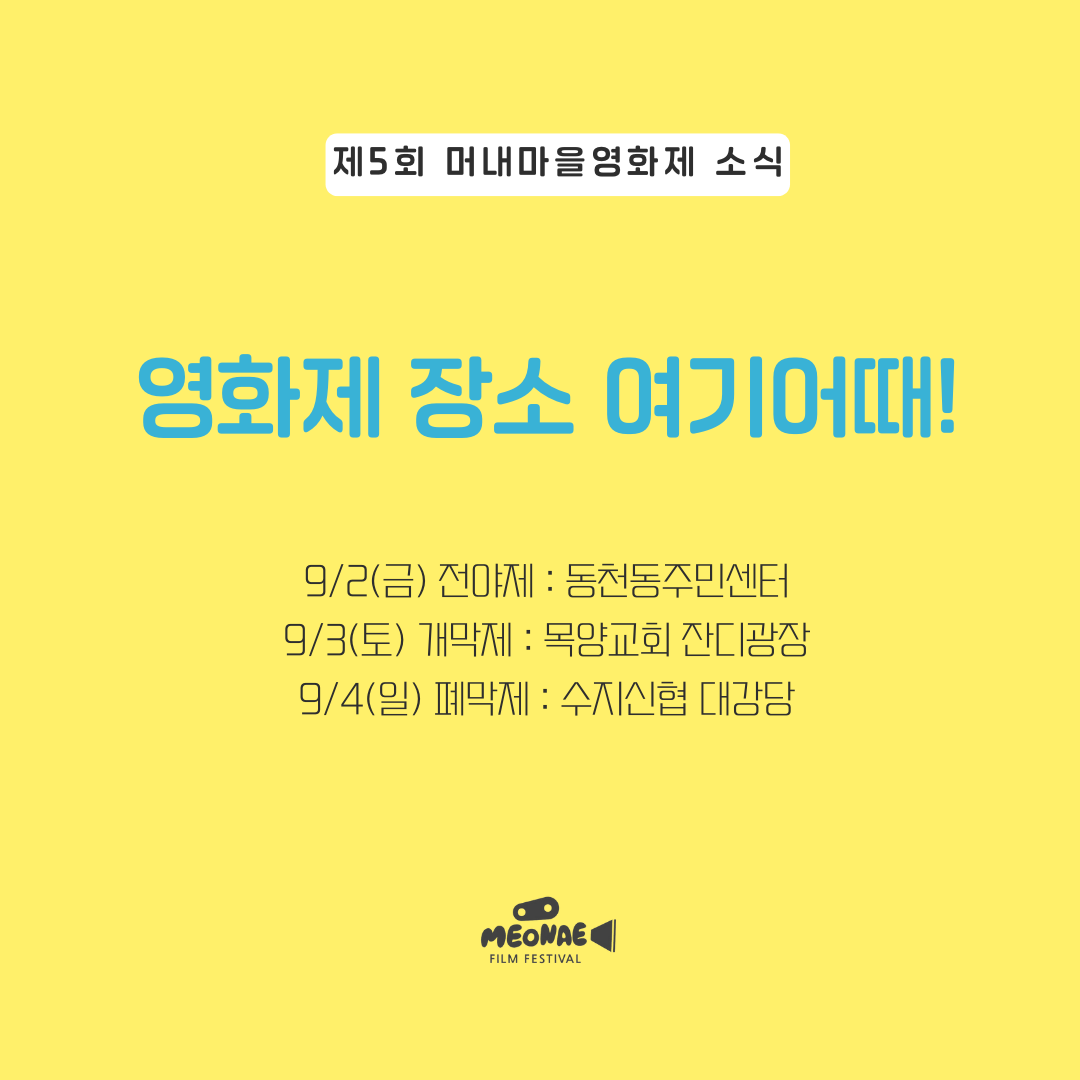 제5회 머내마을영화제가 2022년 9월 2일~9월 4일, 3일간 용인시 수지구 동천동, 고기동 일대에서 개최됩니다.