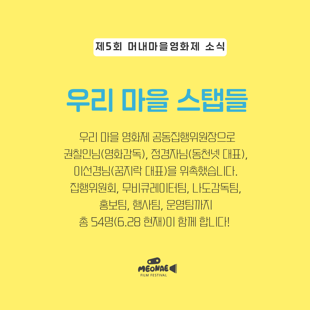 머내마을영화제 다섯번째 공동집행위원장으로 #권칠인감독 (영화감독), 정경자님(#동천넷 대표), 이선경님(#꿈지락 대표)을 위촉했습니다.