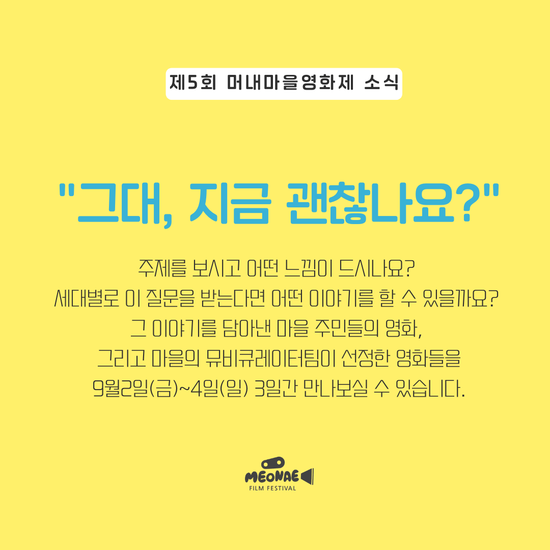 1. 제5회 머내마을영화제 인스타그램, 페이스북, 유튜브를 팔로우해주세요!