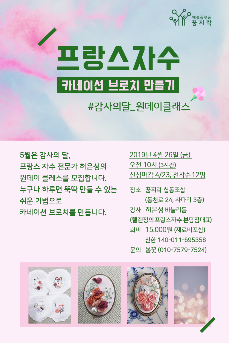 | 프랑스 자수 정규반 첫 오픈! (0) | 2019.05.02 |