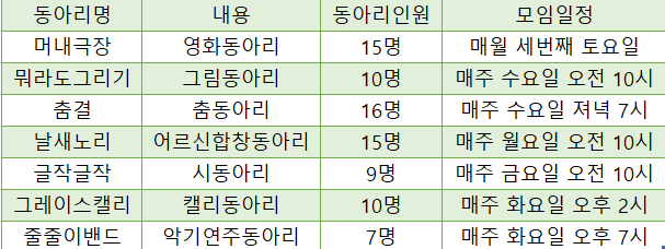 이외 날새노리와 줄줄이밴드,춤결이 꿈지락 동아리로 활동 중입니다.