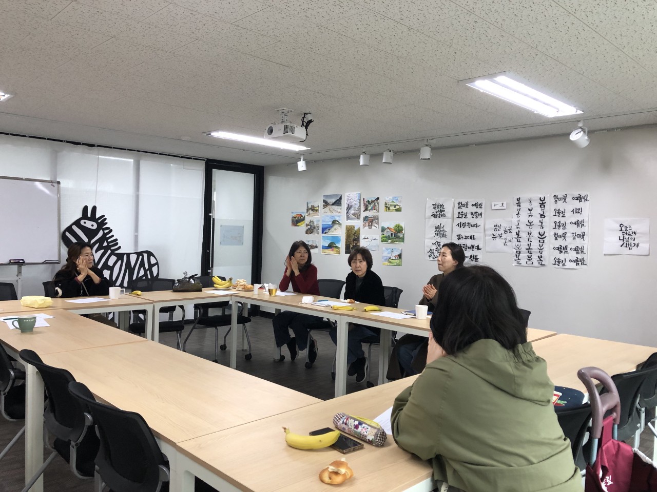 뭐라도 그리기의 가을님, 그레이스 켈리의 이윤경님,글작글작의 유빈님, 머내극장의 어리버리님이 동아리를 대표하여 참여하였고 여름님과 공간을 담당하시는 나무늘보님이 함께 했습니다.